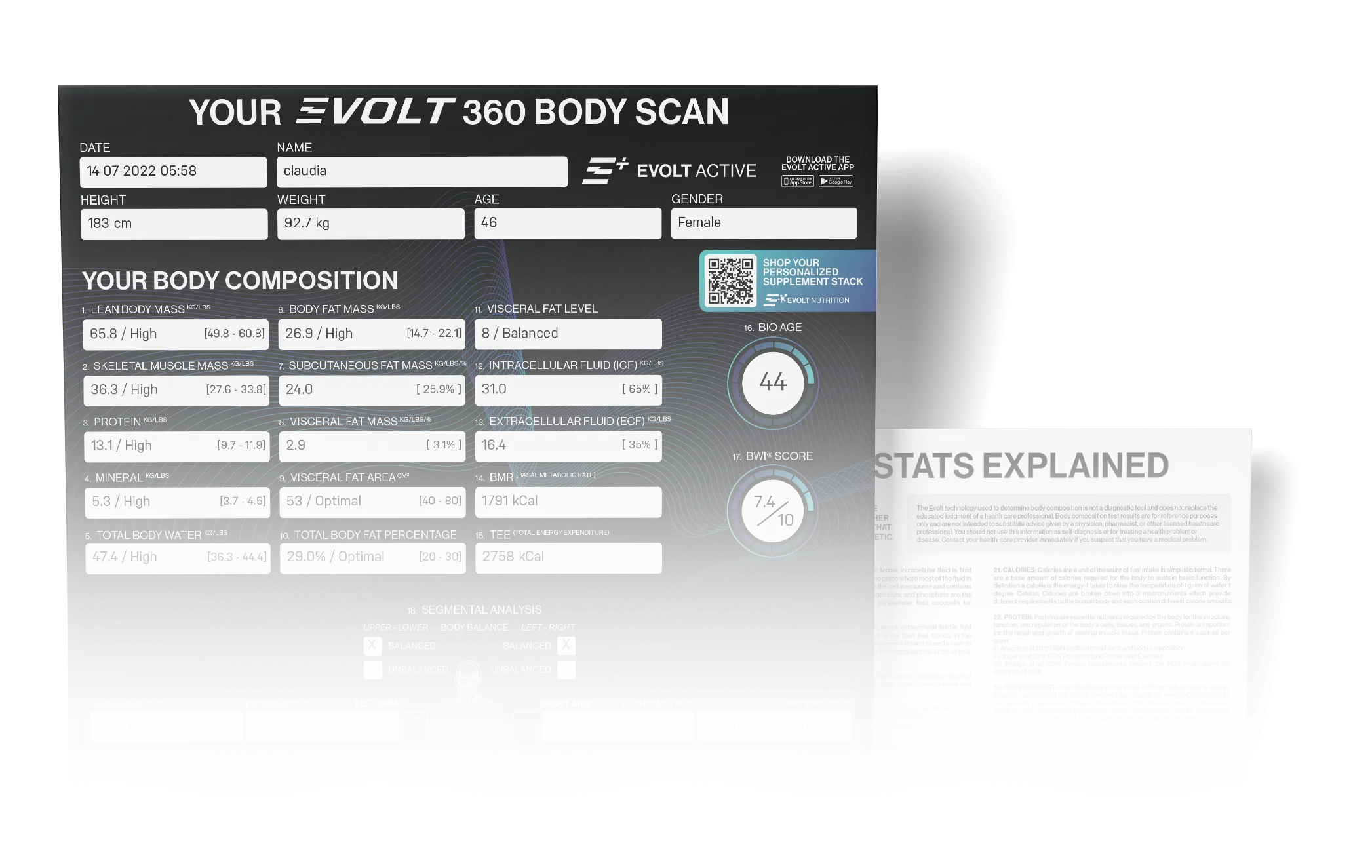 The Evolt 360 Results Sheet goes far beyond the scale. Delivering over 40 precise health metrics in just 60 seconds, your results sheet is a comprehensive snapshot of what's actually happening inside your body from muscle and fat distribution to hydration, metabolic rate, and biological age. This guide walks you through what each measurement means and why it matters for your health journey.