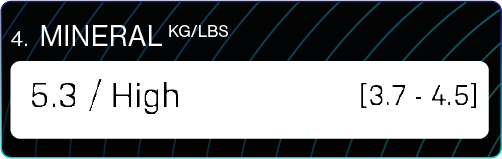 This is your bone mineral estimate. Having high skeletal muscle mass and protein mass will assist in maintaining good bone mineral content. Bone content can decrease with age, especially for women, so it is imperative for those who have a low bone mineral estimate to commence a weight resistance training program and consume adequate amounts of protein in their diet. This should not be confused with a Bone Mineral Density Test which must be completed via DEXA scan.